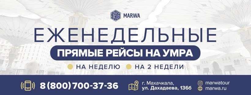 «Я давно мечтала совершить Умру, но не знала, с чего начать. Обратившись в Марва-Тур, я получила полную консультацию и помощь в организации поездки. Все было четко, слаженно и профессионально. Спасибо команде Марва Тур за ваш труд!» — Хадижат С.