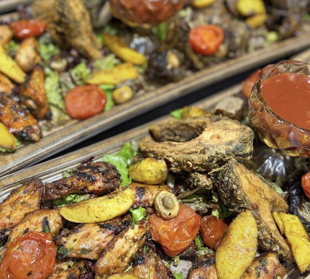 - Ближневосточные блюда: Классические кебабы, хумус, мутабаль и свежие салаты, такие как табуле.